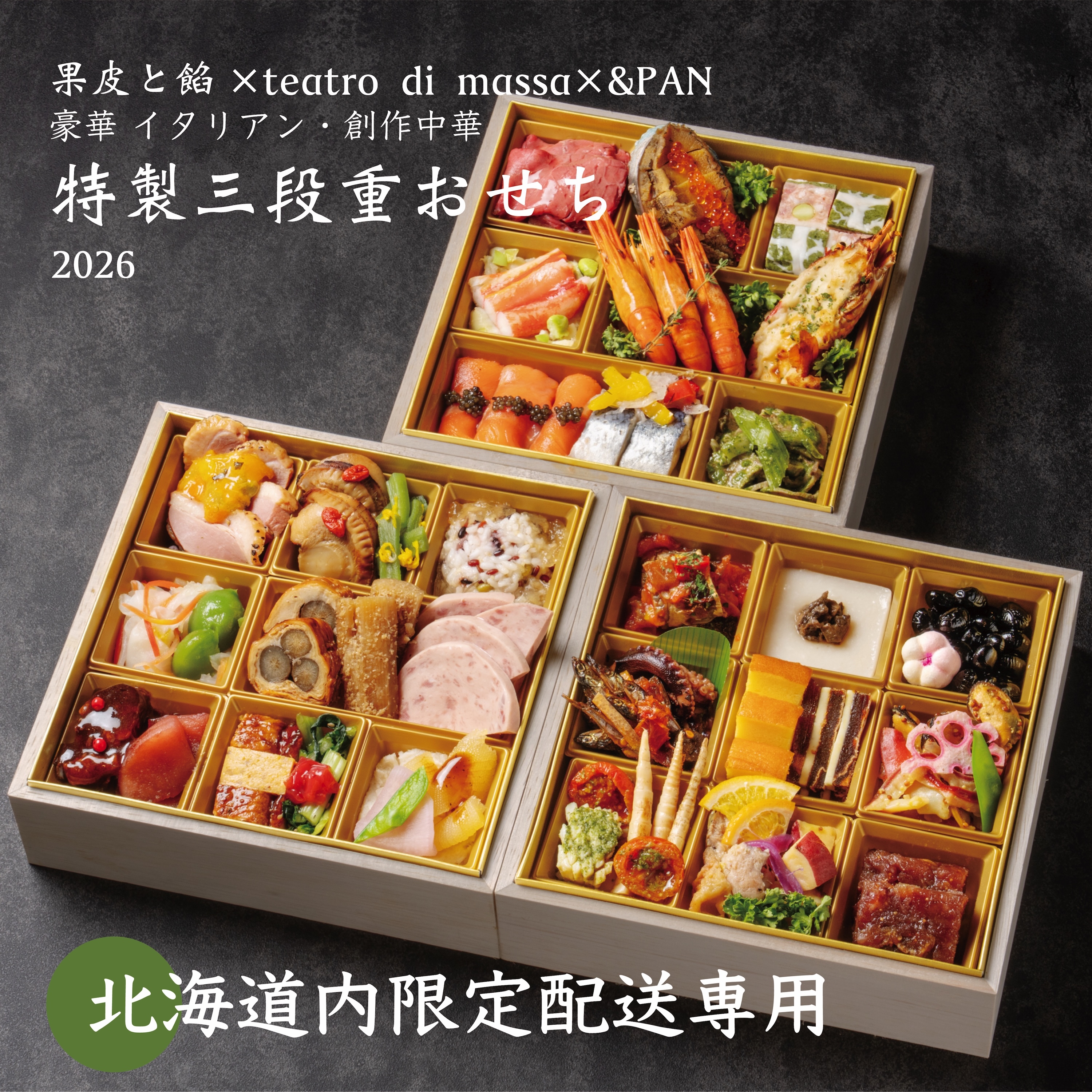 ★配送専用★ 北海道内限定:特製三段重おせち 2026【果皮と餡×teatro di massa×&PAN】
