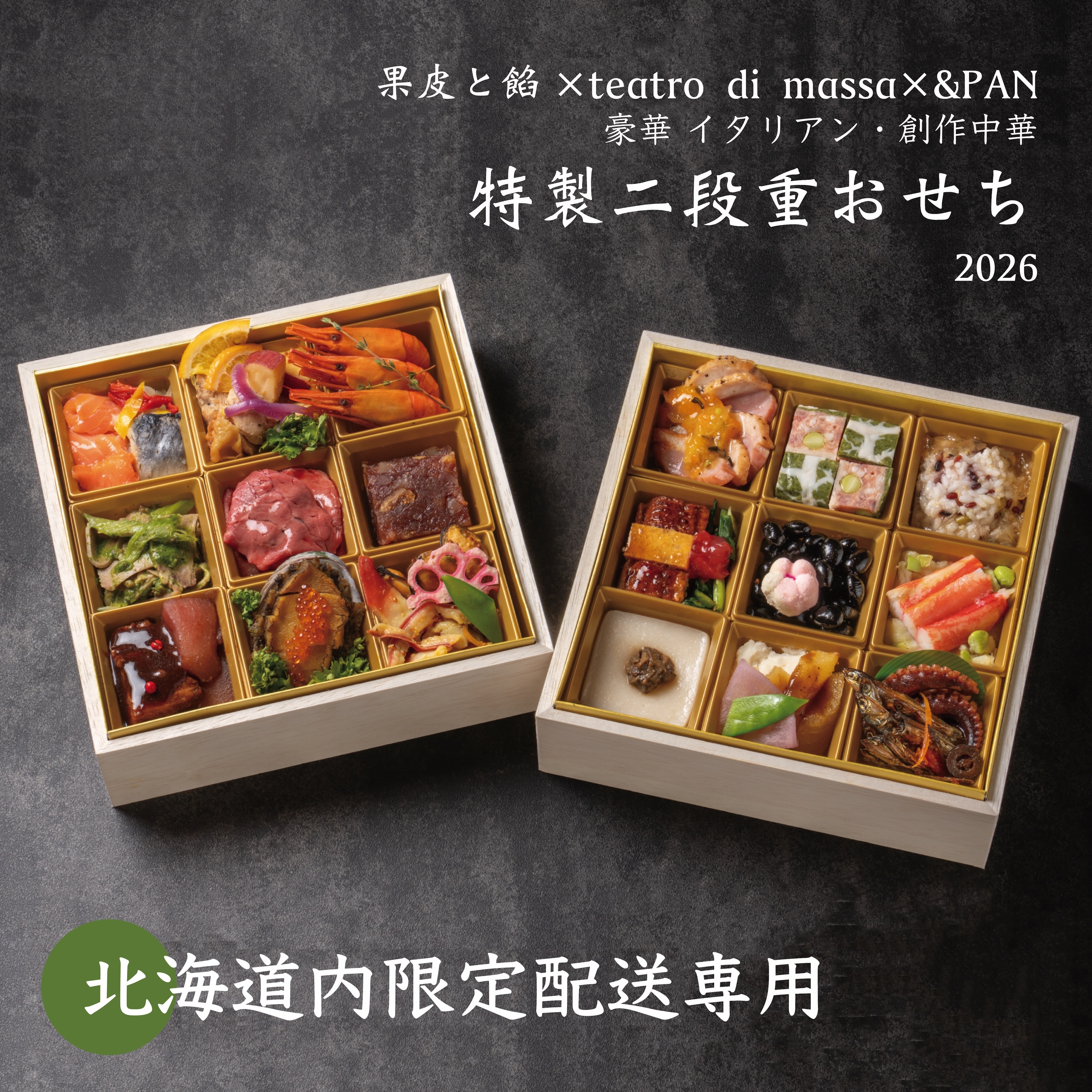 ★配送専用★ 北海道内限定:特製二段重おせち 2026【果皮と餡×teatro di massa×&PAN】